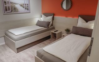 • 2 Betten (90×200) als Einzel- oder Doppelbett zu stellen