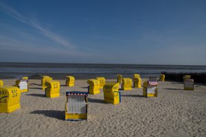 • Strandkorb am Strand in der Saison